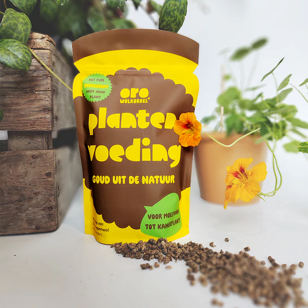 Nieuw bij de Oosteinde Online: ORO wolkorrels, 100% natuurlijke plantenvoeding gemaakt van Nederlandse schapenwol. Wat ooit als afval eindigde, wordt nu een groeiboost voor jouw planten. De korrels bevatten van nature stikstof, kalium en zwavel, essentiële voedingsstoffen die bodem en wortels versterken. Ze zijn volledig biologisch, zonder chemische toevoegingen of eindige grondstoffen, en geschikt voor binnen- en buitenplanten. Eén verpakking van 400 gram is genoeg voor zo’n 20 planten en voorziet ze een heel seizoen van voeding. Zo wordt je plantenplezier duurzaam én efficiënt, zonder concessies te doen aan resultaat. Ontdek het in onze webshop!