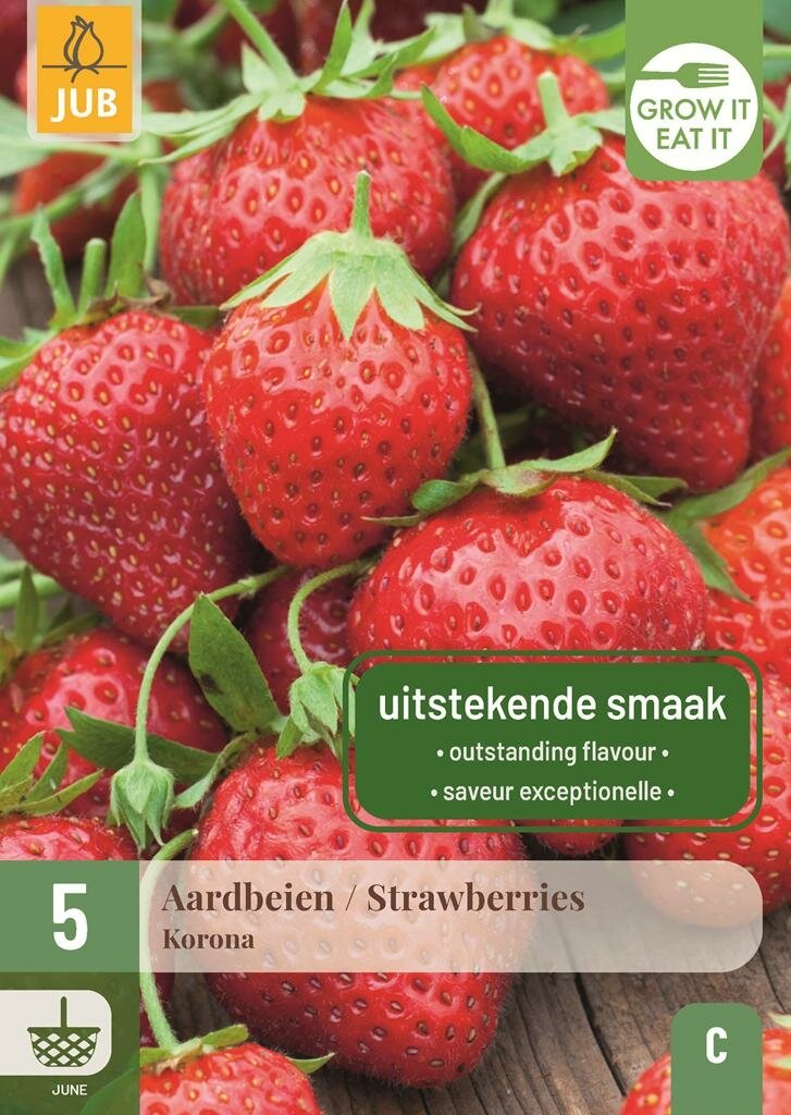 Aardbeienplanten Korona: Heerlijke zomerse vruchten in je eigen moestuin. Geniet van de smaak van zelfgekweekte aardbeien met de Aardbeienplanten Korona. Deze hoogwaardige aardbeienplanten van het merk Jub leveren heerlijke, sappige vruchten die perfect zijn voor directe consumptie of verwerking in desserts. Met hun robuuste groei en rijke opbrengst zijn deze planten een fantastische aanwinst voor elke tuin of moestuin.