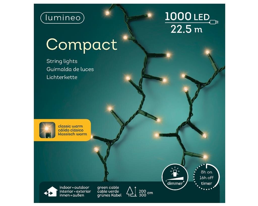 Breng je tuin of woonkamer in kerstsfeer met de Basic kerstverlichting LED compact rice lights 1000 klassiek van Lumineo. Deze sfeervolle verlichting bestaat uit minuscule lampjes, niet veel groter dan een rijstkorrel, die dicht op elkaar zijn geplaatst voor een prachtig clustereffect. Met ongeveer elke 2 cm een lampje creëer je een warme, klassieke uitstraling. Deze energiezuinige LED-verlichting gaat bovendien bijzonder lang mee en is zowel binnen als buiten te gebruiken.