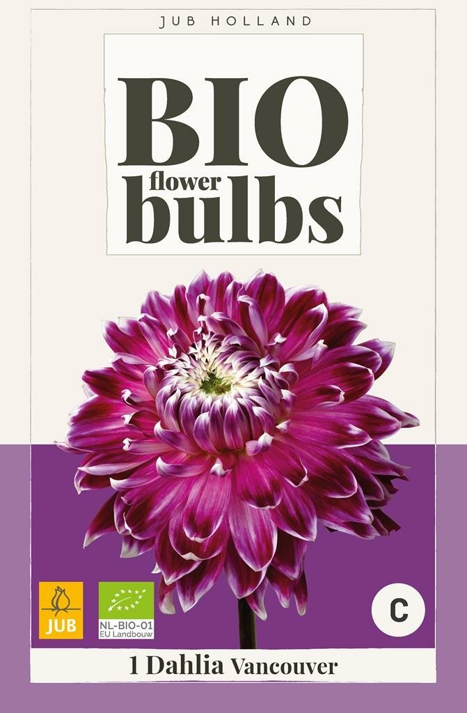 Biologische Dahlia Vancouver: Elegante paars-witte schoonheid voor je tuin. Ontdek de prachtige Bio Dahlia Vancouver, een biologisch geteelde knol die je tuin transformeert met zijn opvallende paars-witte bloemen. Deze dahlia van het gerenommeerde merk Jub combineert natuurlijke schoonheid met duurzaamheid. Met een indrukwekkende hoogte van 70 cm en een lange bloeiperiode van juli tot oktober, brengt deze biologische dahlia maandenlang kleur in je tuin.