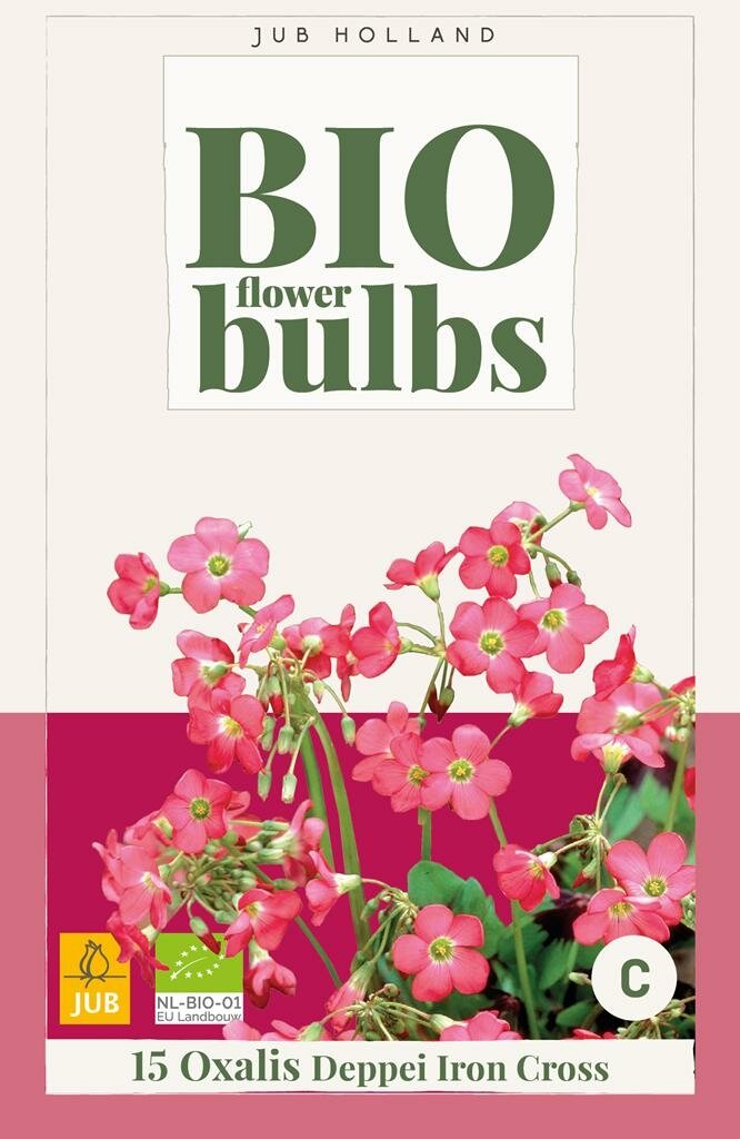 Bio Oxalis Deppei Iron Cross: Biologische klaver met uniek patroon. Breng je tuin tot leven met de Bio Oxalis Deppei Iron Cross, een biologisch geteelde sierklaver met opvallende roze bloemen en decoratief blad. Deze bijzondere plant van het merk Jub combineert schoonheid met duurzaamheid en is volledig biologisch gekweekt volgens de SKAL NL-BIO-01 normen. De karakteristieke donkere kruisvormige tekening op het blad maakt deze plant tot een echte blikvanger in je tuin of op je terras.