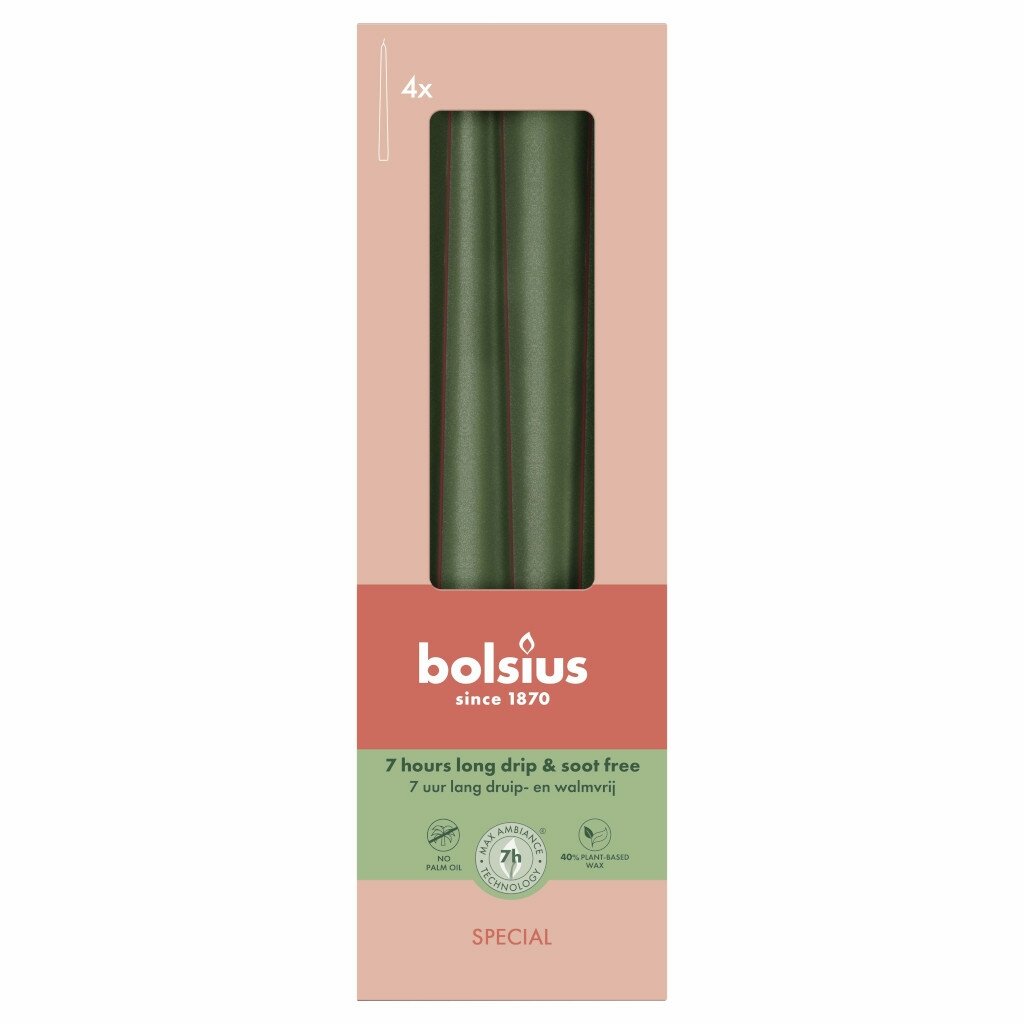 Bolsius gotische kaarsen 4 stuks metallic green 24.5cm