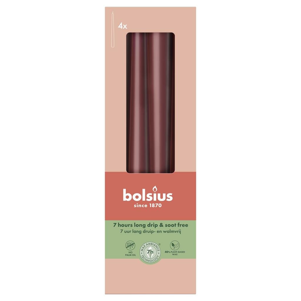 Combineer deze kaarsen met natuurlijke materialen zoals hout of steen voor een rustieke uitstraling, of met glanzende metalen accessoires voor een meer moderne look. Door hun klassieke vorm en rijke kleur passen ze perfect bij feestelijke gelegenheden, maar ook bij alledaagse momenten wanneer je wat extra sfeer wilt creëren.