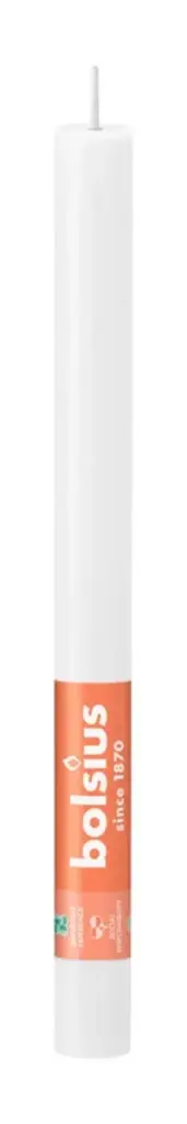 Creëer een warme en sfeervolle ambiance in je huis met de Bolsius huishoudkaars rustiek 27 cm cloudy wit. Deze elegante dinerkaars van het kwaliteitsmerk Bolsius heeft een prachtige witte kleur die perfect past bij zowel moderne als klassieke interieurs. De kaars is gemaakt van hoogwaardige plantaardige was met een katoenen lontje, waardoor deze gelijkmatig en vrijwel rookvrij opbrandt.