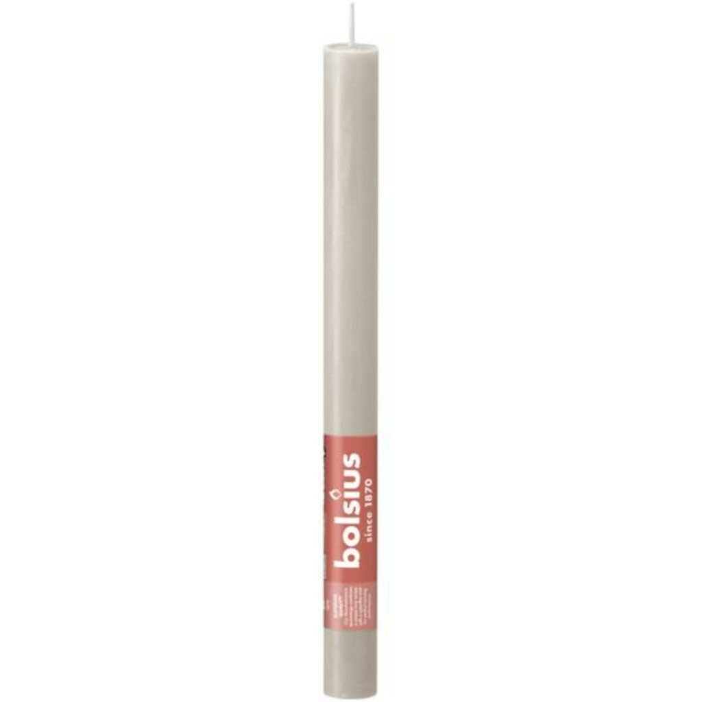 Creëer een warme en sfeervolle ambiance in je huis met de Bolsius huishoudkaars rustiek 27 cm sandy grey. Deze elegante dinerkaars van het kwaliteitsmerk Bolsius heeft een prachtige grijze kleur die perfect past bij zowel moderne als klassieke interieurs. De kaars is gemaakt van hoogwaardige plantaardige was met een katoenen lontje, waardoor deze gelijkmatig en vrijwel rookvrij opbrandt.