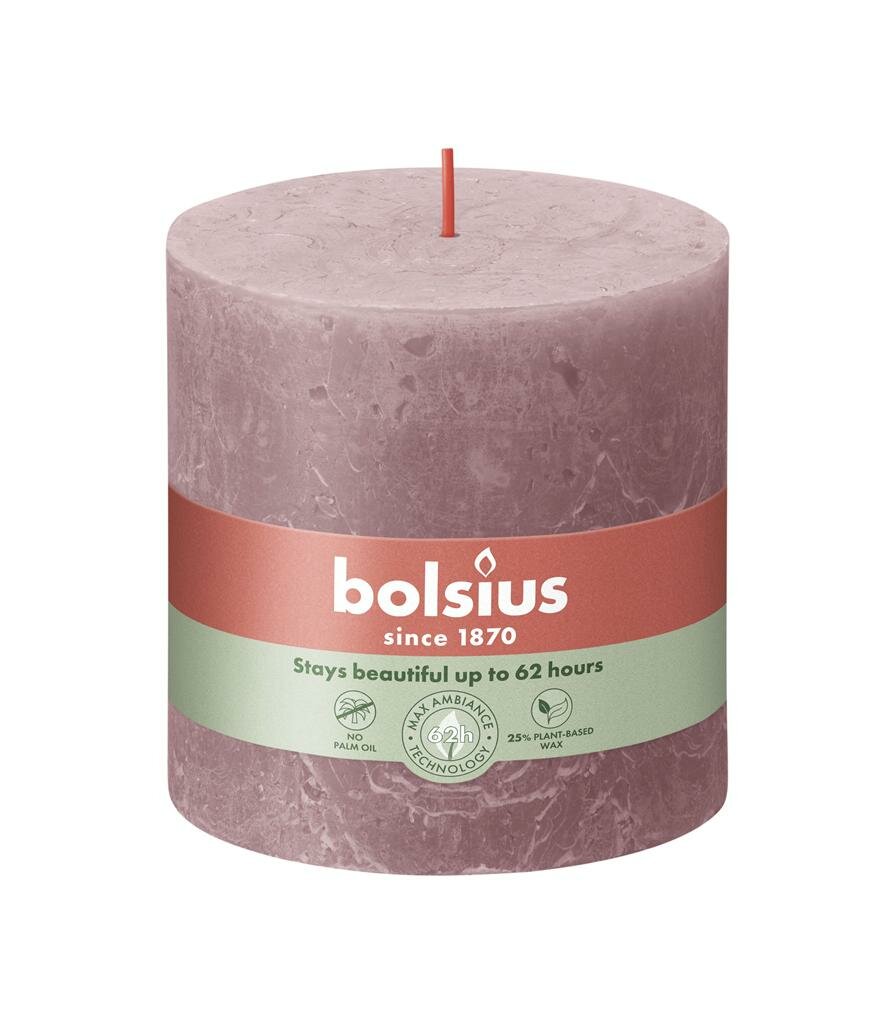 Rustieke sfeermaker voor je interieur. Bolsius kaars rustiek 10x10 cm ash rose is een prachtige stompkaars die direct sfeer toevoegt aan je interieur. Deze vernieuwde rustieke kaars van Bolsius is geïnspireerd door de kleuren en texturen uit de natuur. Met zijn prachtige tint, vormt deze kaars een stijlvolle aanvulling op je woondecoratie. De kaars is gemaakt van plantaardige was zonder dierlijke vetten en heeft een katoenen lontje voor een schone verbranding.