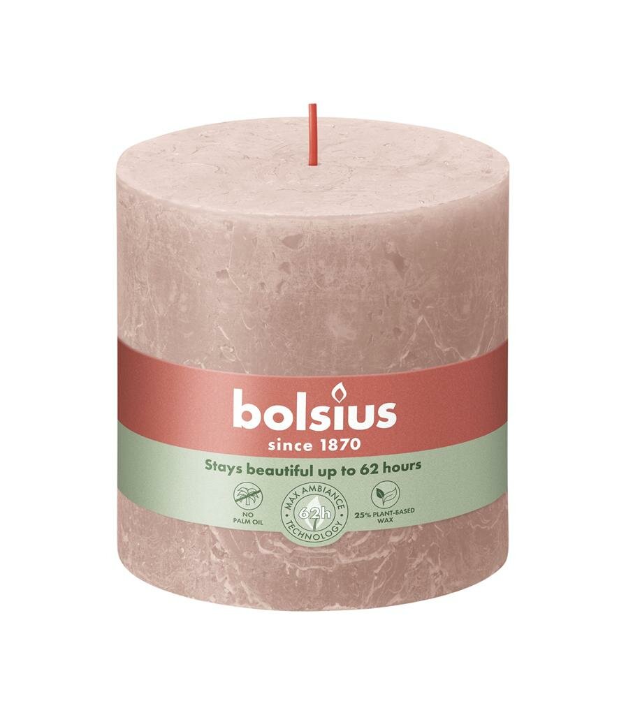 Rustieke sfeermaker voor je interieur. Bolsius kaars rustiek 10x10 cm Misty Pink is een prachtige stompkaars die direct sfeer toevoegt aan je interieur. Deze vernieuwde rustieke kaars van Bolsius is geïnspireerd door de kleuren en texturen uit de natuur. Met zijn prachtige tint, vormt deze kaars een stijlvolle aanvulling op je woondecoratie. De kaars is gemaakt van plantaardige was zonder dierlijke vetten en heeft een katoenen lontje voor een schone verbranding.