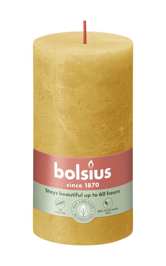 De Bolsius rustieke kaars in honeycomb yellow is veelzijdig toe te passen in je interieur. Plaats de kaars op een stevige, hittebestendige ondergrond zoals een kaarsenplateau of kandelaar. De prachtige tint komt prachtig tot zijn recht in combinatie met natuurlijke materialen zoals hout en linnen. Je kunt de kaars solo gebruiken als blikvanger of combineren met andere kaarsen in verschillende hoogtes voor een speels effect.
