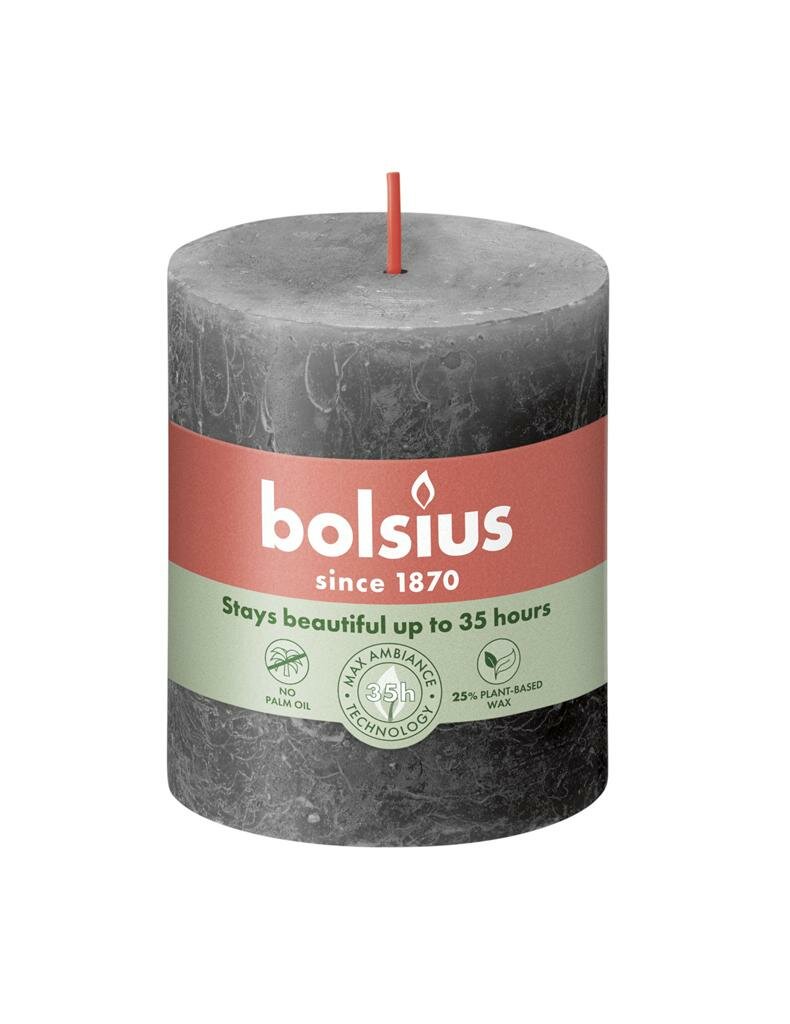 Rustieke sfeermaker voor je interieur. Bolsius kaars rustiek 7x8 cm stormy grey is een prachtige stompkaars die direct sfeer toevoegt aan je interieur. Deze vernieuwde rustieke kaars van Bolsius is geïnspireerd door de kleuren en texturen uit de natuur. Met zijn prachtige tint, vormt deze kaars een stijlvolle aanvulling op je woondecoratie. De kaars is gemaakt van plantaardige was zonder dierlijke vetten en heeft een katoenen lontje voor een schone verbranding.