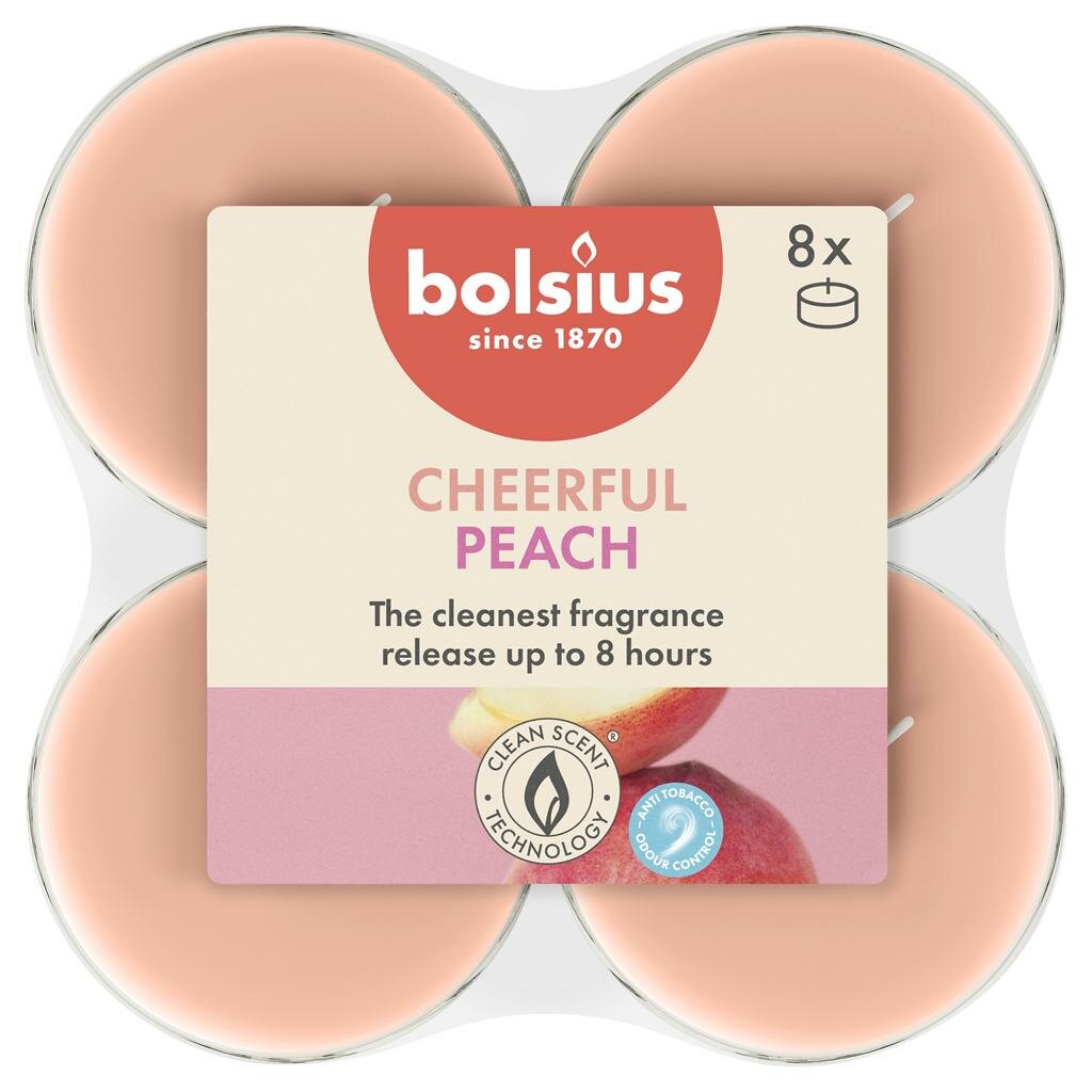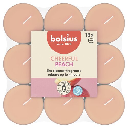 Creëer een warme en gezellige sfeer in je huis met de Bolsius maxi theelichten true scents peach. Deze hoogwaardige geurkaars van Bolsius verspreidt een zachte, natuurlijke perzikgeur die op een subtiele manier door de ruimte zweeft. De zorgvuldig samengestelde geur is gebaseerd op natuurlijke ingrediënten en staat garant voor kwaliteit. Met een royale brandtijd van ongeveer 8 uur kun je langdurig genieten van deze heerlijke perzikgeur die je woongenot verhoogt en de sfeer in huis aangenaam verandert.