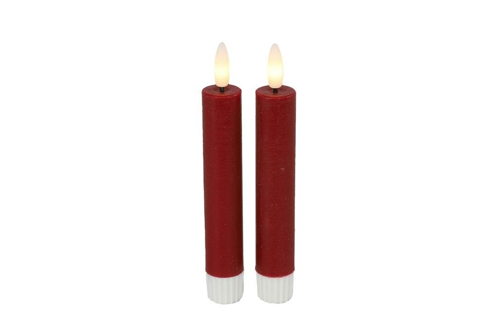 Dinerkaars rustiek 15 cm Lyon rood: Stijlvolle sfeermaker zonder brandgevaar. Breng een warme, gezellige sfeer in je interieur met de Dinerkaars rustiek 15 cm Lyon rood van Countryfield. Deze set van twee elegante LED-kaarsen combineert de authentieke uitstraling van echte waskaarsen met het gemak en de veiligheid van moderne LED-technologie. Perfect voor plekken waar je liever geen open vuur gebruikt, maar wel de sfeervolle gloed van kaarslicht wilt ervaren.