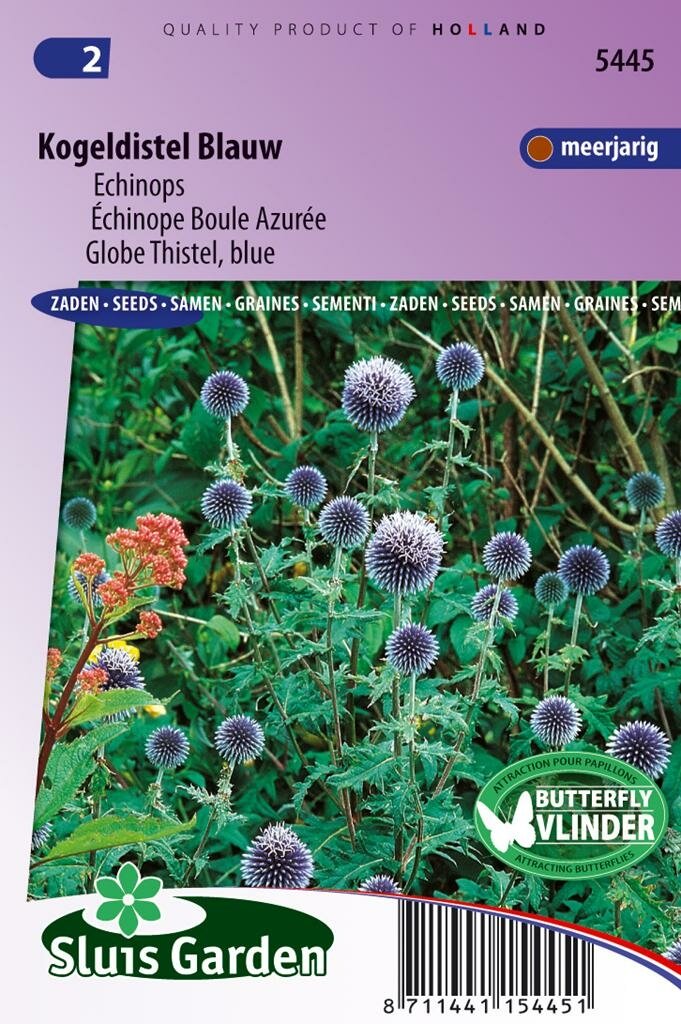 Echinops Ritro Kogeldistel: Indrukwekkende blauwe bollen voor je tuin. Echinops Ritro zaden Kogeldistel Blauw van Sluis Garden is een opvallende meerjarige plant die je tuin verrijkt met prachtige diepblauwe bolvormige bloemen. Deze decoratieve vlinderplant bloeit in het tweede jaar na zaai en vormt een indrukwekkende verschijning met een hoogte tot wel 120 cm. De karakteristieke blauwe bollen zijn niet alleen een lust voor het oog in de tuin, maar behouden ook in gedroogde vorm hun prachtige kleur.
