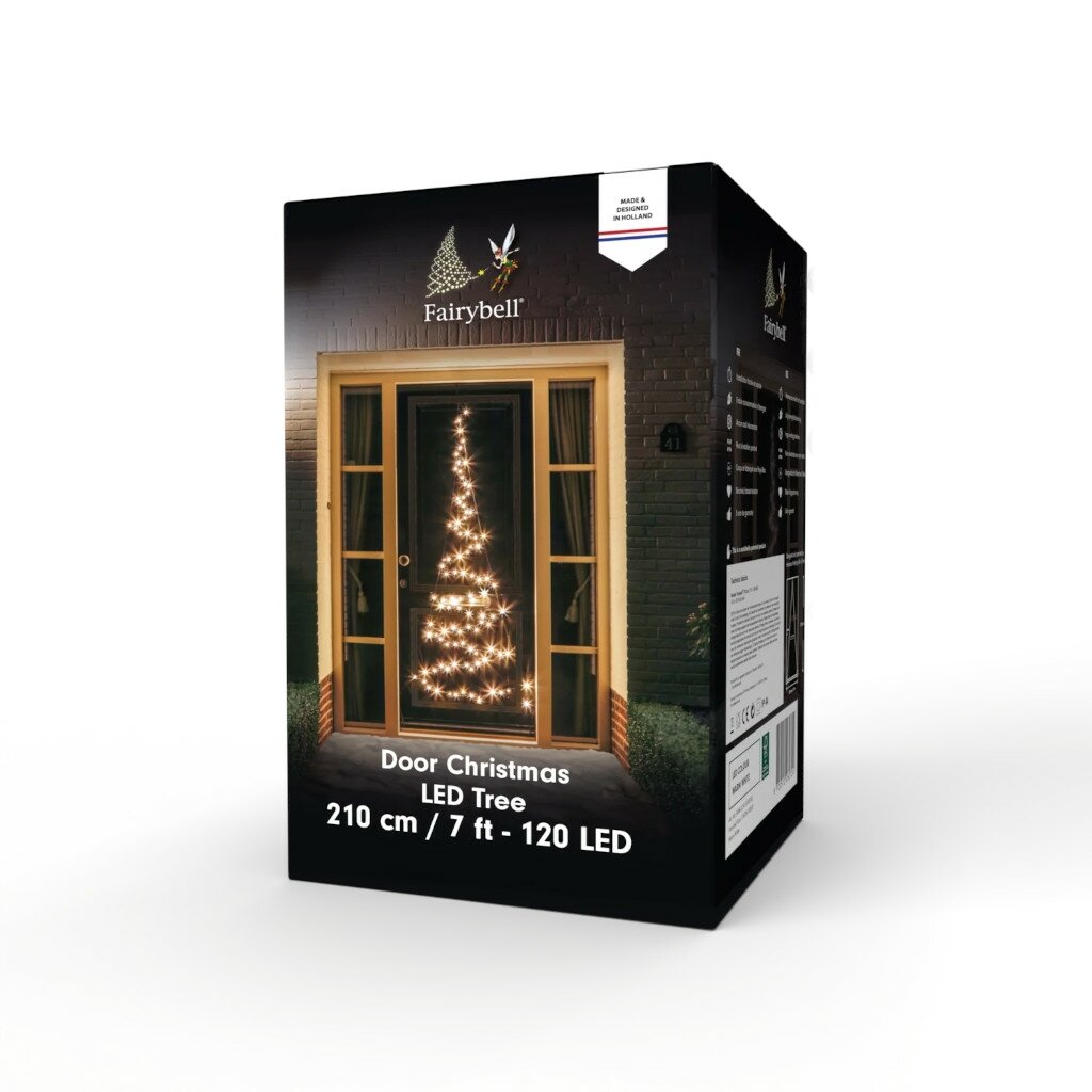 Transformeer je voordeur in een prachtige kerstboom met de Fairybell Deur 210 cm 120 LED Warm Wit. Dit unieke verlichtingssysteem van het merk Fairybell creëert een schitterende kerstboomvorm van 2,1 meter hoog die je eenvoudig aan je deur bevestigt. Overdag is de verlichting nauwelijks zichtbaar, maar 's avonds geniet je van een magische kerstboom met 120 warm witte LED-lampjes die je deur sfeervol verlichten.