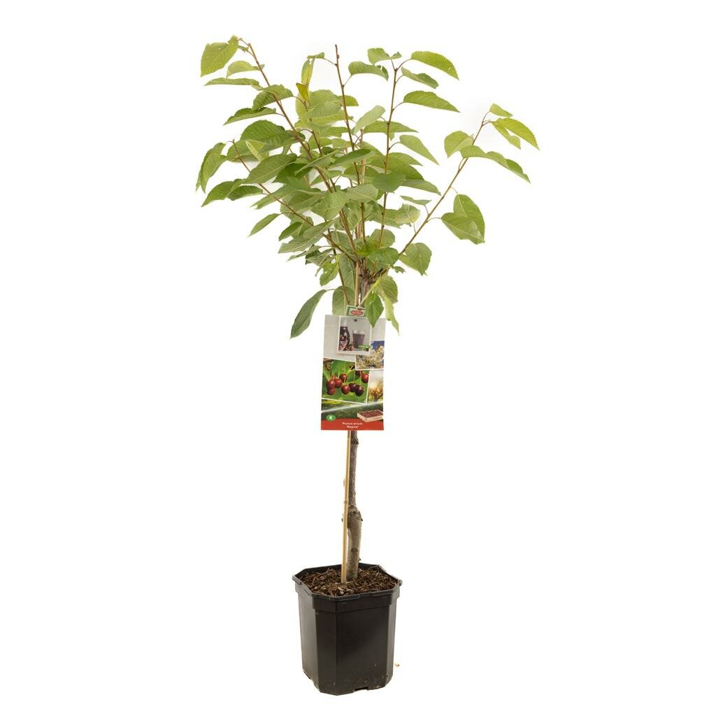 Plant de kersenboom op een zonnige tot halfschaduwige plek in je tuin of kies een grote pot voor op het terras. De boom gedijt het beste in goed doorlatende grond die voldoende voedingsstoffen bevat. Water regelmatig, vooral tijdens droge periodes en in de groeiperiode. Snoei de boom tussen oktober en december om de vorm te behouden en de groei te stimuleren. Bij teelt in een pot is het belangrijk om regelmatig bij te mesten voor optimale groei en vruchtvorming.