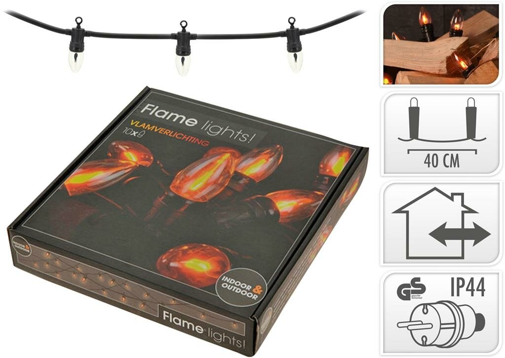 De lampjes geven een warm, sfeervol licht dat perfect past bij de gezelligheid van de wintermaanden. Deze vlam verlichting is veelzijdig en praktisch in gebruik. De set bestaat uit 10 gloeilampjes met een natuurlijk flikkerend effect, verdeeld over een snoer van 3,6 meter. Met een ruimte van 10 cm tussen de lampjes creëer je een gelijkmatige verdeling van het warme licht. De set wordt geleverd met een 1,5 meter lang aansluitsnoer, waardoor je flexibel bent in het plaatsen van de verlichting. Andere kenmerken zijn: