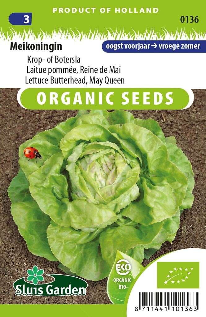 Biologische Kropsla Meikoningin: Boterzacht en smaakvol. De biologische kropsla Meikoningin van Sluis Garden is een prachtige lichtgroene sla die snel een mooie volle krop vormt. Deze klassieke kropsla staat bekend om zijn boterzachte blad en heerlijke smaakvolle karakter. Je kunt deze biologische sla al vroeg in het seizoen zaaien vanaf 10°C, waardoor je al snel kunt genieten van je eigen gekweekte kropsla in je moestuin.