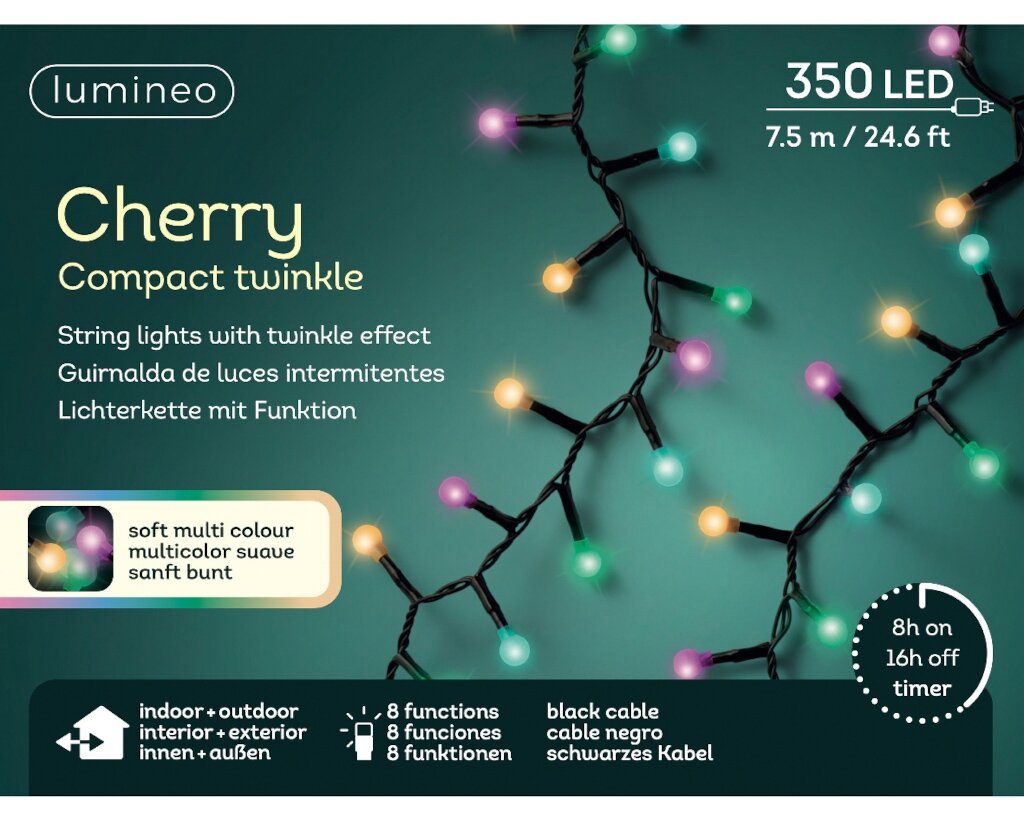 Wil je deze kerst je huis omtoveren tot een warm en sfeervol geheel? De Led cherry lights compact 350 lamps soft multi colour is de perfecte keuze voor een rijkelijk verlichte kerstboom of andere feestelijke decoratie. Je kunt deze prachtige verlichting eenvoudig online bestellen.