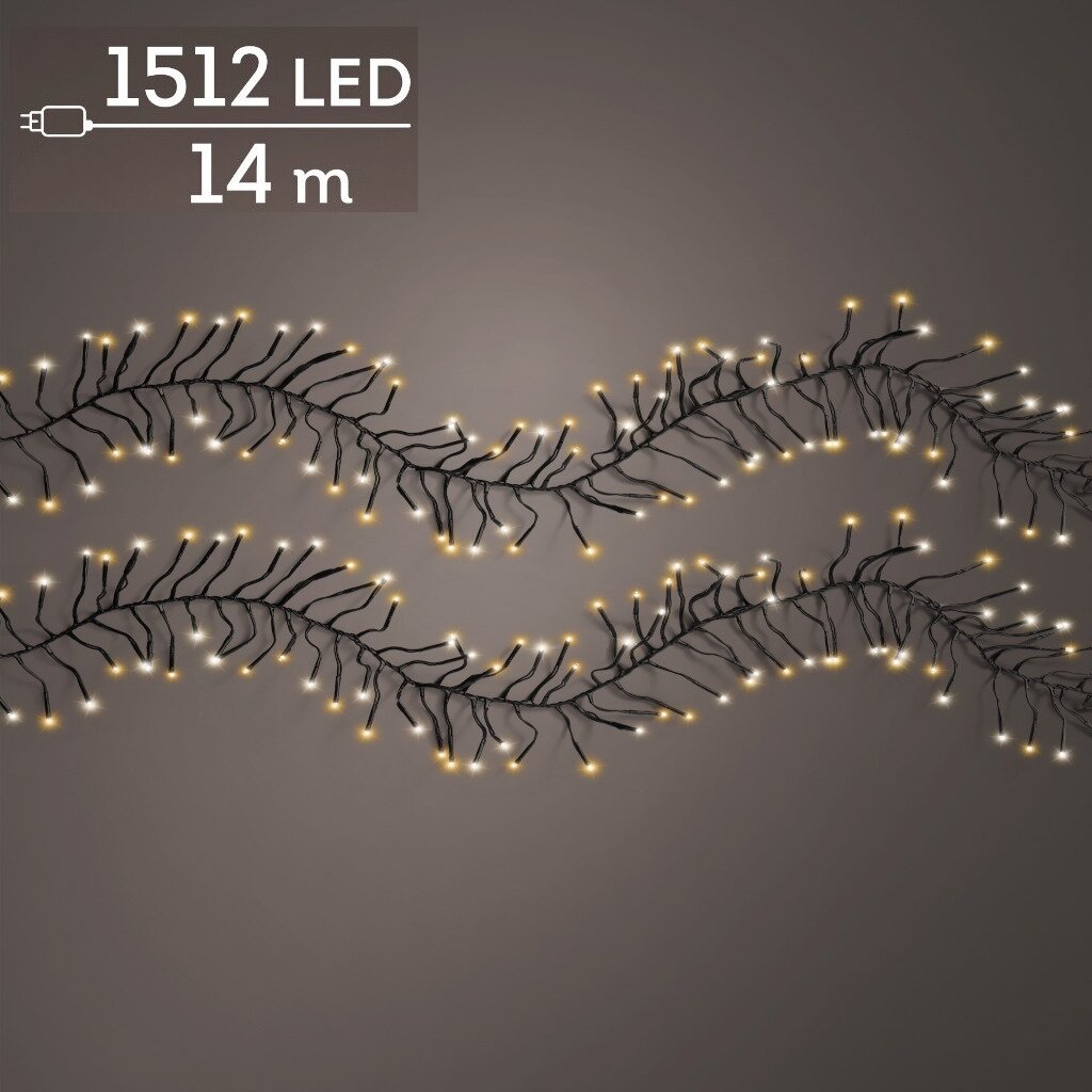 LED clusterverlichting warm wit / klassiek warm 1512 lampjes van Lumineo is de perfecte keuze voor wie op zoek is naar sfeervolle kerstverlichting met een klassieke uitstraling. Met maar liefst 1512 warme LED-lampjes creëer je een prachtige lichtbeleving die zowel binnen als buiten tot zijn recht komt. De klassiek warme gloed doet denken aan traditionele kerstverlichting, maar dan met alle voordelen van moderne LED-technologie.