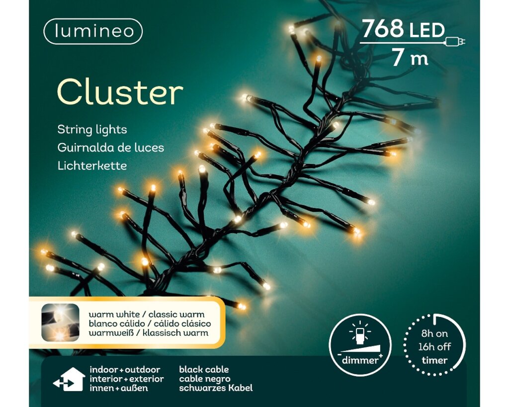 LED clusterverlichting warm wit / klassiek warm 768 lampjes van Lumineo is de perfecte keuze voor wie op zoek is naar sfeervolle kerstverlichting met een klassieke uitstraling. Met maar liefst 768 warme LED-lampjes creëer je een prachtige lichtbeleving die zowel binnen als buiten tot zijn recht komt. De klassiek warme gloed doet denken aan traditionele kerstverlichting, maar dan met alle voordelen van moderne LED-technologie.