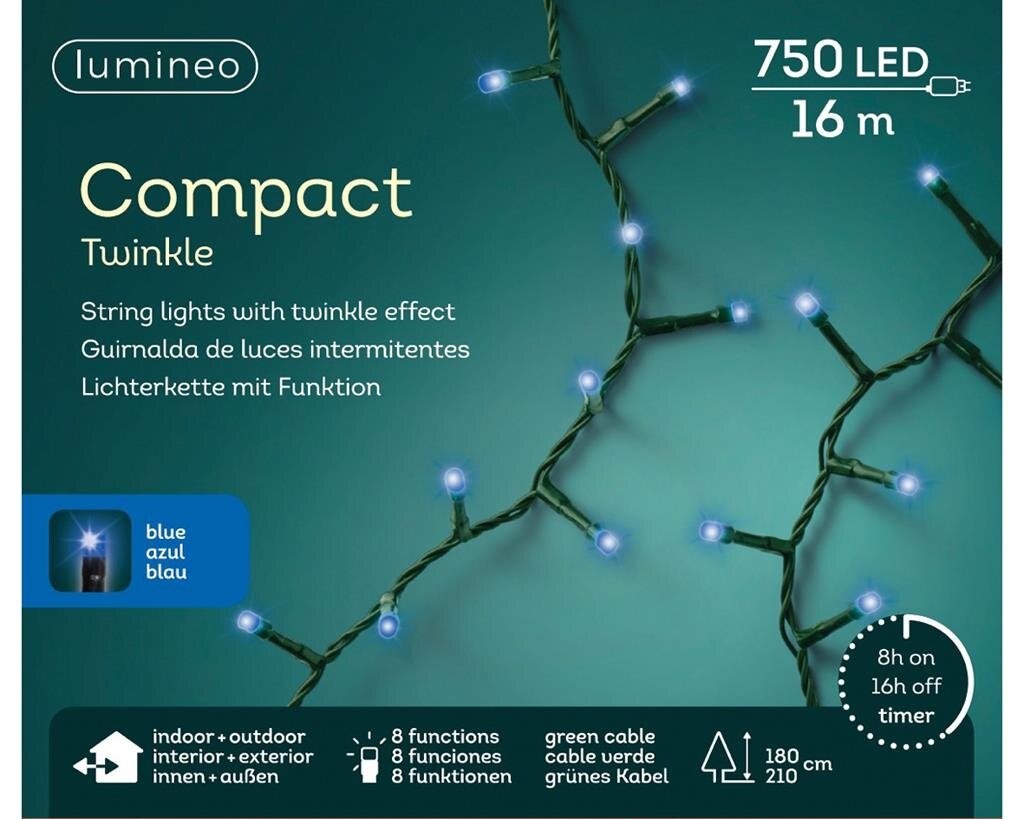 LED Compact Twinkel Lights 750 Blauw: Magische Sfeerverlichting voor Binnen en Buiten. Creëer een betoverende sfeer met de LED Compact Twinkel Lights 750 Blauw van Lumineo. Deze sfeervolle kleine lampjes, niet veel groter dan een rijstkorrel, zijn speciaal ontworpen voor een indrukwekkend cluster-effect. Met ongeveer elke 2 cm een lampje zorgt deze verlichting voor een oogverblindende lichtbeleving die jouw kerstdecoratie naar een hoger niveau tilt. De energiezuinige rice lights gaan bovendien bijzonder lang mee.