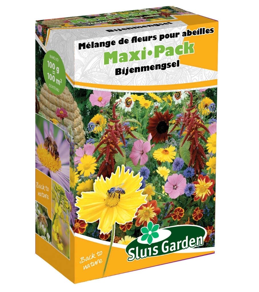MaxiPack Bijenmengsel: Creëer een Bloeiend paradijs voor bijen. MaxiPack zaden Bijenmengsel 100 m² is een speciaal samengestelde bloemenmix van Sluis Garden die een grote aantrekkingskracht heeft op bijen en andere bestuivende insecten. Deze uitgebreide zaadmix zorgt voor een kleurrijke bloemenweide die niet alleen je tuin verfraait, maar ook bijdraagt aan het behoud van onze belangrijke bestuivers.