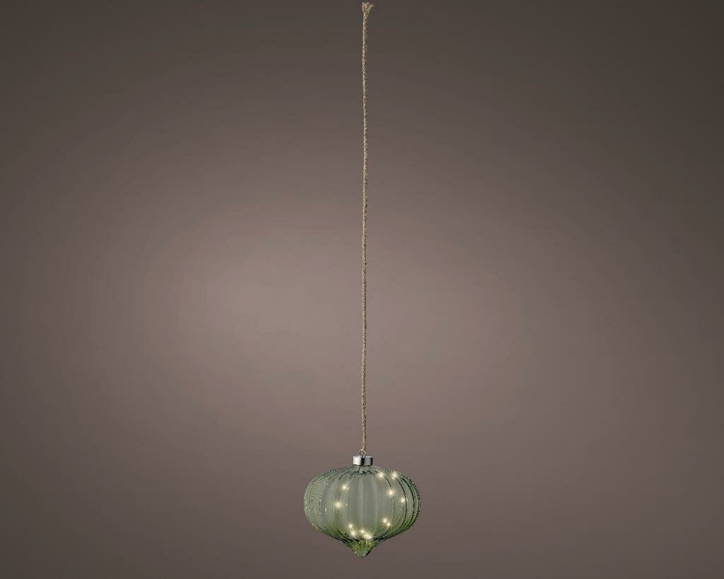 Breng sfeer in huis met de Micro led ui 20 cm groen warm wit. Deze stijlvolle glazen bol met subtiele micro verlichting creëert een warme, gezellige ambiance in elk interieur. Met het meegeleverde jute touw hang je deze decoratieve lichtbron eenvoudig op. De groene glazen ui met 15 warm witte LED-lampjes is een sfeervol accent voor je woonkamer, slaapkamer of als feestelijke decoratie.