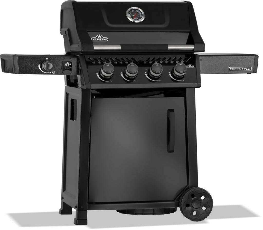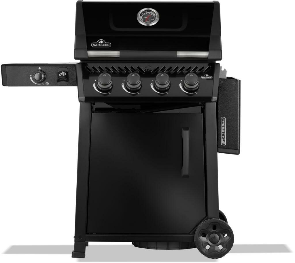 Napoleon Freestyle 425 gasbarbecue voor ultiem buitenkoken. De Napoleon Freestyle 425 met 4 hoofdbranders zwart is een compacte gasbarbecue die premium kwaliteit combineert met een uitstekende prijs-kwaliteitverhouding. Deze Napoleon barbecue beschikt over drie krachtige RVS branders en een handige aparte zijbrander, waarmee je volledige maaltijden in de buitenlucht kunt bereiden. Met zijn robuuste wielen en inklapbare zijtafels past deze barbecue perfect bij jouw levensstijl en beschikbare ruimte.