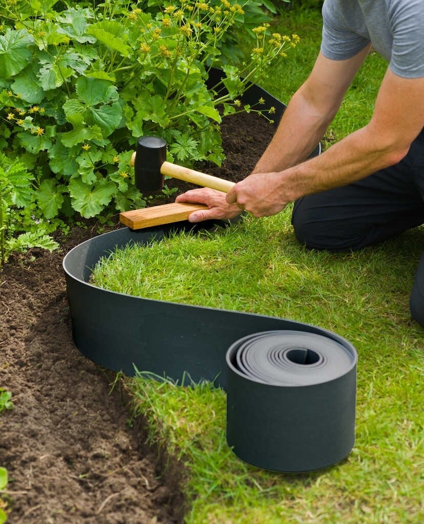 Deze veelzijdige borderrand is perfect voor het afbakenen van verschillende elementen in je tuin. Gebruik hem om een duidelijke scheiding te maken tussen je gazon en borders, om paden te omlijnen of om boomstronken netjes af te werken. Het aanbrengen is eenvoudig: graaf een smalle geul van ongeveer 5-6 cm diep, plaats de rand erin en vul de geul weer aan met aarde. Voor een strakke look kun je de rand gelijk met het grondoppervlak plaatsen, wat ook het maaien vergemakkelijkt. Wil je juist een duidelijkere afscheiding? Laat dan een deel van de rand boven de grond uitsteken. Door de flexibiliteit kun je zowel strakke lijnen als organische vormen creëren.