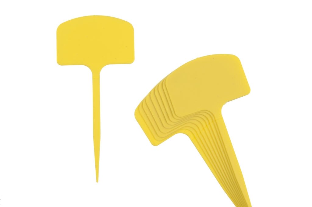Nature plaatetiketten zijn praktische hulpmiddelen voor elke tuinier die graag het overzicht houdt in de moestuin of plantenbakken. Deze set van 10 stuks heeft een stevig schrijfplaatje van 3,5 x 5,5 cm dat bevestigd is op een spike van 12,5 cm lang. Gemaakt van duurzaam geel kunststof zijn deze etiketten perfect om je planten duidelijk te markeren en te identificeren.