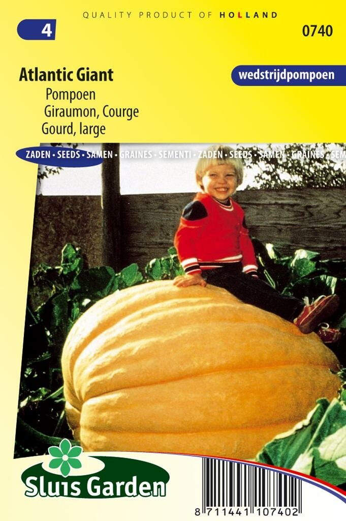 Pompoen zaden Atlantic Giant: Kweek de grootste pompoen ter wereld. Pompoen zaden Atlantic Giant van Sluis Garden zijn wereldberoemd om hun vermogen om gigantische pompoenen te produceren. Deze bijzondere variëteit staat bekend als 's werelds grootste pompoen en is een absolute aanrader voor tuiniers die willen deelnemen aan pompoen-wedstrijden of gewoon een spectaculaire reuze-pompoen in hun tuin willen kweken. In de Benelux kunnen deze pompoenen een indrukwekkend gewicht van 150-250 kg bereiken!