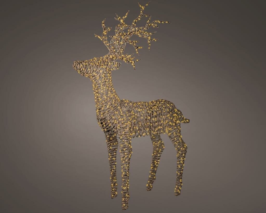 Maak uw kerstdecoratie dit jaar compleet met dit schitterende verlichte rendier. De combinatie van 1320 warm witte LED-lampjes en de elegante gouden uitvoering zorgt voor een onvergetelijke sfeer tijdens de feestdagen. Bestel dit unieke decoratiestuk vandaag nog online voor tijdige levering of bezoek een van onze fysieke winkels waar onze medewerkers u graag adviseren over de perfecte plaatsing en combinatiemogelijkheden met andere kerstdecoraties.