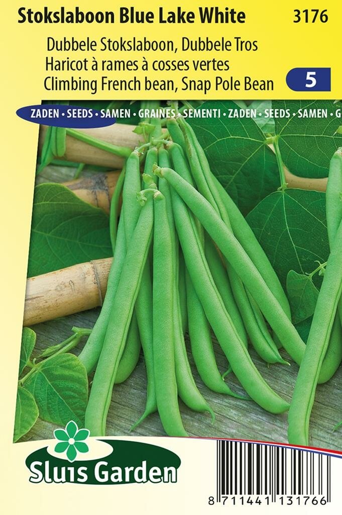 Stokslaboon Blue Lake White: Traditionele smaak en rijke oogst. Stokslaboon Blue Lake White is een klassieke stokboon van het merk Sluis Garden die bekend staat om zijn heerlijke ouderwetse bonensmaak. Deze variëteit produceert prachtige, vlezige sperziebonen van 14 cm lang die in trossen van 4-5 stuks aan de plant hangen. Perfect voor de moestuinier die op zoek is naar een betrouwbare en smakelijke oogst met die authentieke smaak die je terugbrengt naar grootmoeders keuken.