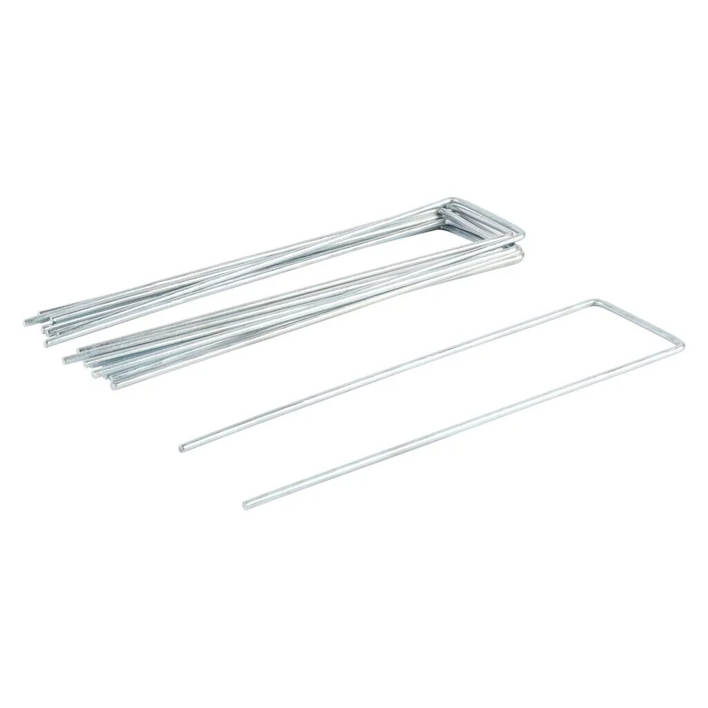 Een worteldoek of gronddoek in de tuin functioneert optimaal, wanneer deze ook optimaal is bevestigd. Gebruik daarvoor deze metalen gronddoekpennen van Talen Tools. Ze worden geleverd in een set van 10 stuks, zodat jij gemakkelijk ook grotere dekzeilen of gronddoeken in de grond plaatst. De pennen staan zo’n 5 centimeter uit elkaar en zijn 20 centimeter lang. Om zeker te weten dat je voor een stabiele bevestiging gaat, zijn de metalen pinnen in doorsnee zo’n 3 millimeter. Deze gronddoekpennen zijn ook ideaal voor het plaatsen van insectennetten of voor het vastzetten van kunstgrasmatten.