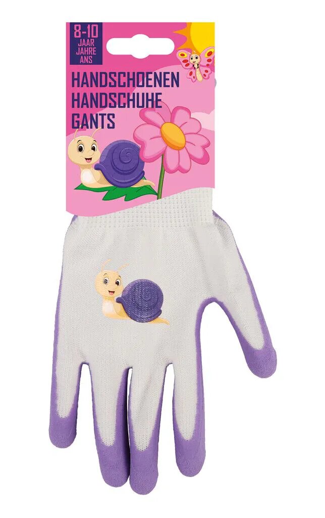 In de ruime nieuwe collectie kinderwerkhandschoenen van Talen Tools vind je onder meer dit model met een slakkenprint. Deze uitvoering is geschikt voor de wat grotere kinderen van 8 tot 10 jaar. De basis van de handschoen bestaat uit slijtvast en flexibel polyester. Een aanvulling van een laag latex verhoogt de grip en bescherming rond de vingers en de handpalm. Hierdoor kun je met een vertrouw gevoel jouw kinderen laten meehelpen in de tuin of bij klusjes in de garage. Latex geeft een goede grip in natte omstandigheden.