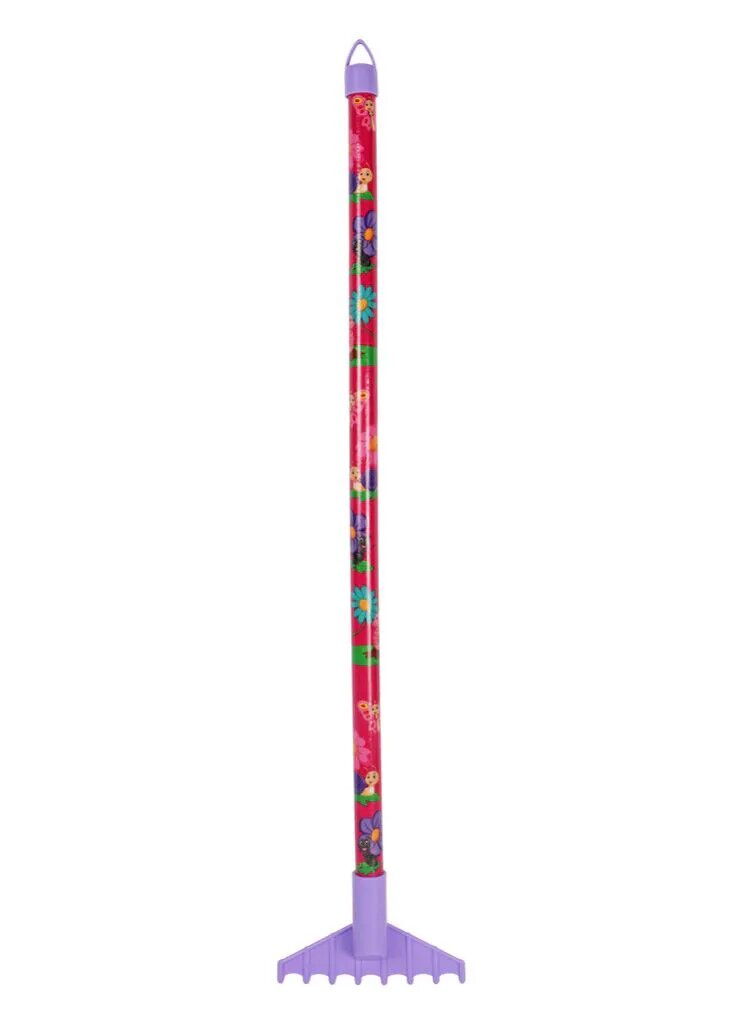 De collectie kindergereedschappen van Talen Tools wordt vaak gekenmerkt door een opvallende uitstraling. Dit model valt op door de kleurencombinatie van een overwegend rode steel met een paarse tuinhark. Wanneer je inzoomt op die steel zie je een samenspel van dieren die jouw kinderen ongetwijfeld ook wel eens in de tuin terug zien. Miertjes, vlinders en slakjes zorgen samen voor een kindvriendelijk ontwerp. Deze vrolijke animaties maken het net een stukje leuker om de tuinhark erbij te pakken.