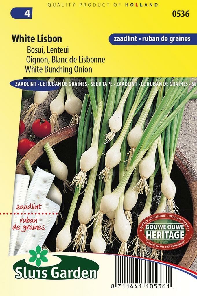 Ui White Lisbon zaailint: Gemak en smaak in je moestuin. Ui White Lisbon zaailint van Sluis Garden is de ideale oplossing voor iedereen die moeiteloos witte bosuitjes wil kweken. Dit handige zaailint is gemaakt van papier dat vanzelf in de grond oplost, waardoor je in één keer een perfecte rij bosuitjes zaait. De witte, ovaalronde uitjes met rechtopstaand donkergroen blad zijn niet alleen decoratief in je moestuin, maar ook lang houdbaar en heerlijk van smaak in diverse gerechten.