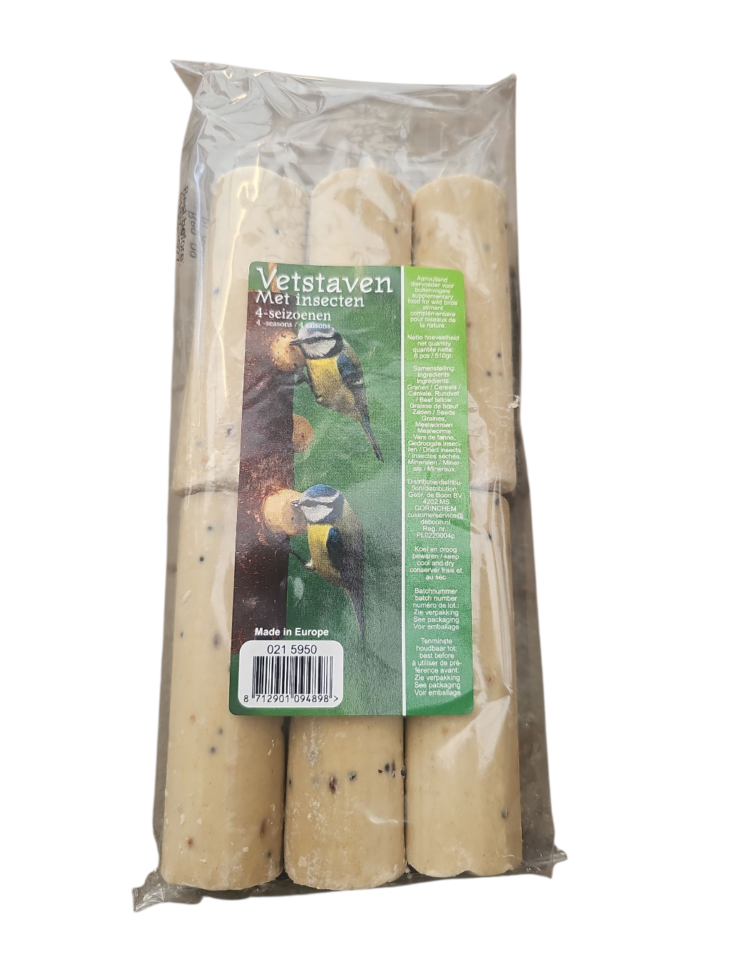 De set bestaat uit 6 vetstaven, waardoor je langere tijd kunt genieten van de vogels in je tuin zonder steeds nieuwe voeding te hoeven kopen.