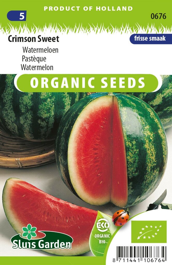 Watermeloen Crimson Sweet: Een smaakvolle zomerlekkernij. Ontdek de heerlijke Watermeloen Crimson Sweet, een prachtige watermeloen met opvallende donkergroene strepen die bekend staat om zijn geweldige smaak en hoog suikergehalte. Deze biologisch geteelde zaden van Sluis Garden bieden je de mogelijkheid om zelf deze verfrissende zomerlekkernij te kweken. Met de juiste verzorging kun je vruchten oogsten van meer dan 10 kg, perfect voor warme zomerdagen.