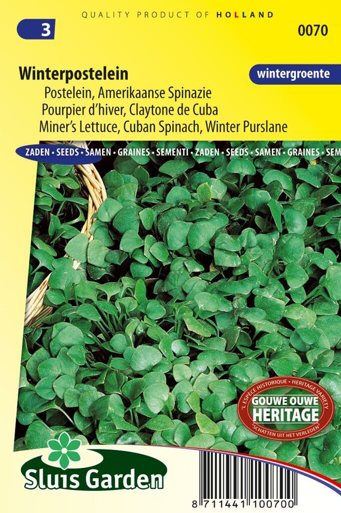 Winterpostelein: Een verrassende wintergroente voor je moestuin. Winterpostelein is een bijzondere bladgroente uit het assortiment van Sluis Garden die zich onderscheidt van gewone postelein. Deze winterharde groente herken je direct aan de karakteristieke schotelvormige bladeren van 2 tot 3 cm groot. Met zijn frisse, licht pittige smaak en rijkdom aan vitamines en mineralen is winterpostelein een waardevolle aanvulling voor je moestuin tijdens de koudere maanden.