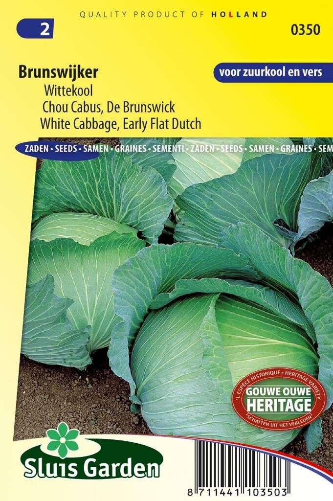 Wittekool zaden Brunswijker: een traditionele klassieker voor je moestuin. Wittekool zaden Brunswijker is een oud en vertrouwd ras dat al sinds 1880 wordt geteeld. Deze klassieke wittekool van het merk Sluis Garden produceert grote, platronde kolen met een gewicht tot wel 3 kg per stuk. De kolen zijn rijk aan verschillende mineralen en bevatten waardevolle vitamines B en C, wat ze tot een gezonde aanvulling op je maaltijden maakt. Perfect voor zowel vers gebruik als voor het maken van traditionele zuurkool.